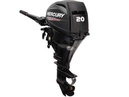 The Mercury 8hp Mercury Outboard is ideal for long shaft Jon boats, skiffs, and small pontoons as well as sailboat and trolling/kicker applications. This 84 lb. Mercury 8 HP Outboard engine is lightweight and yet the powerful twin-cylinder four-stroke offers smooth, quiet, fuel efficient operation. The multi-function tiller handle provides one-hand operation of F-N-R gear shifting, throttle and throttle tension, steering, and stopping. Mercury’s patented auto-ratchet system allows the user to easily adjust tilt and trim angle. The Mercury 8 HP Outboard Motor model: 8MLH is equipped with manual start and a 20 inch long shaft.