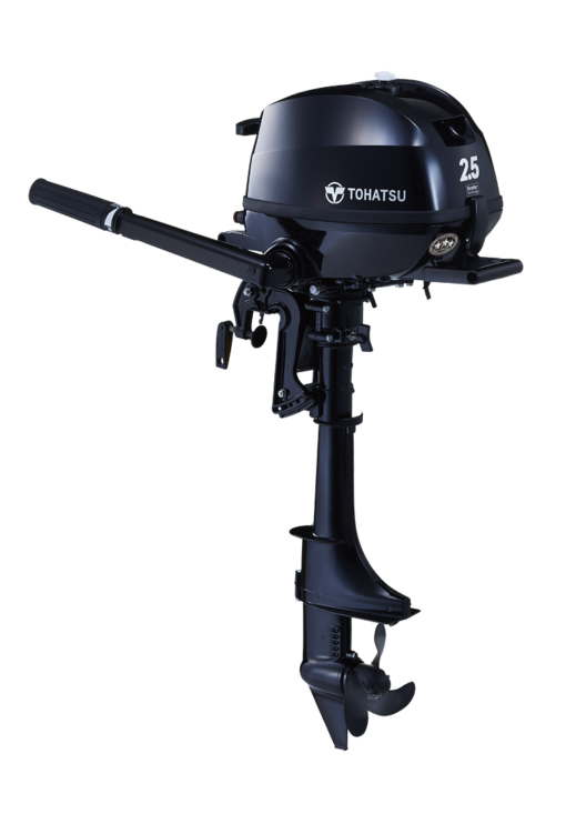 The 2.5hp Tohatsu outboard motor is an excellent choice for square back canoes, small tenders and inflatables, and other small craft. The new 2.5hp 4-stroke outboard includes the newly designed top and bottom cowls based on Tohatsu Design Philosophy for Marine Products, 3-way storage positions without worrying about oil spill, the newly designed front and back carrying handles for easier transportation, and ultra-low emission, EPA and CARB 3-Star rating approved. The 2.5 hp is lightweight and has a four point vibration absorption system to minimize vibration along with sensational fuel economy. The MFS2.5CS engine is light, compact and powerful boasting the largest displacement in its class (85.5 cc). Tohatsu outboard motors are salt-water rated and built to last — the 2.5hp outboard is no exception to the rule. Quality construction and a long list of included features set the Tohatsu 2.5 HP outboard engine apart from the competition. Features such as full-size twist grip throttle, forward-neutral shift with 360 degree steering, and integral fuel tank make boating easy.
